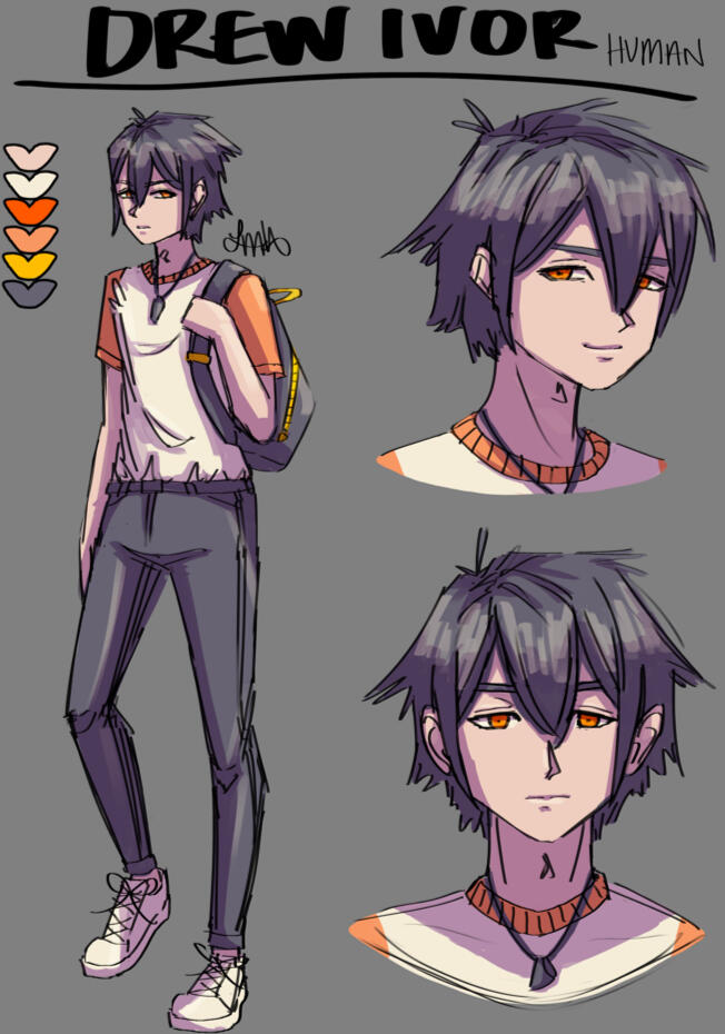 Refined sketch (no line art), full color, color may exceed lines, lines may have varying thickness, with lighting/shading.Character Ref Sheet: Sketch Render