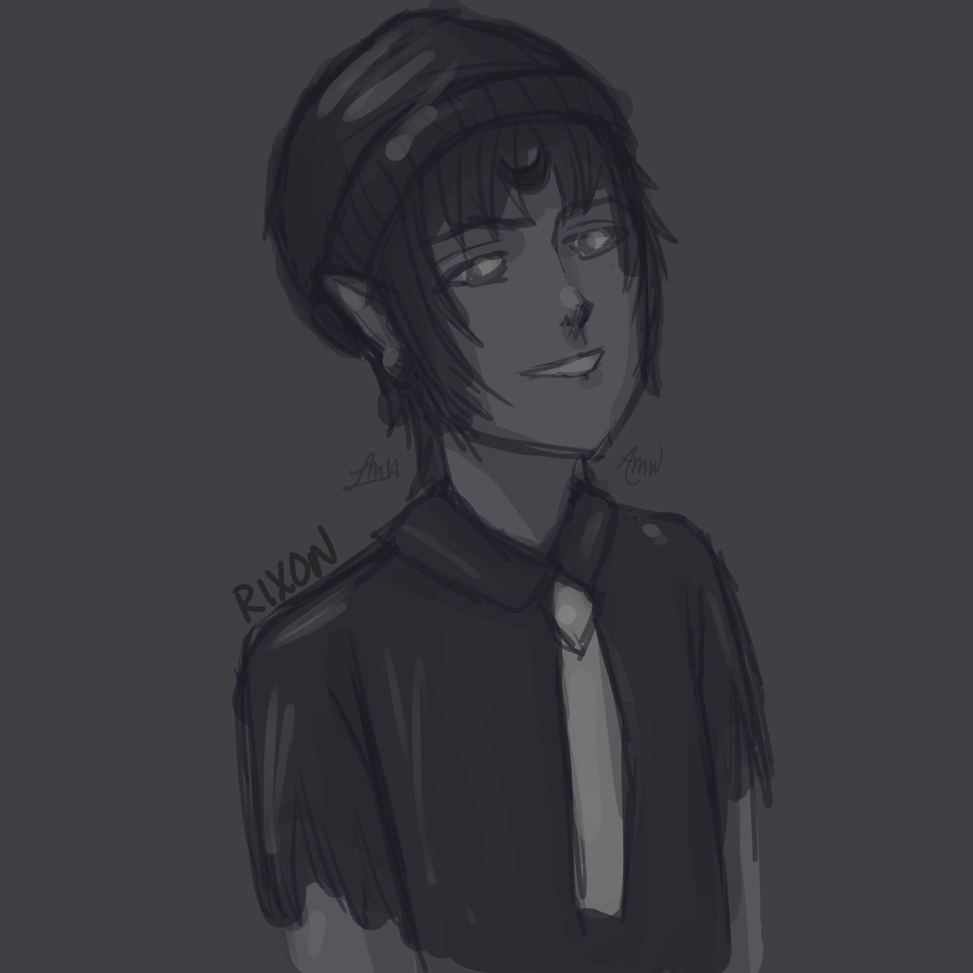 Refined sketch (no line art), full color, color may exceed lines, lines may have varying thickness, with lighting/shading.Monochrome Sketch: