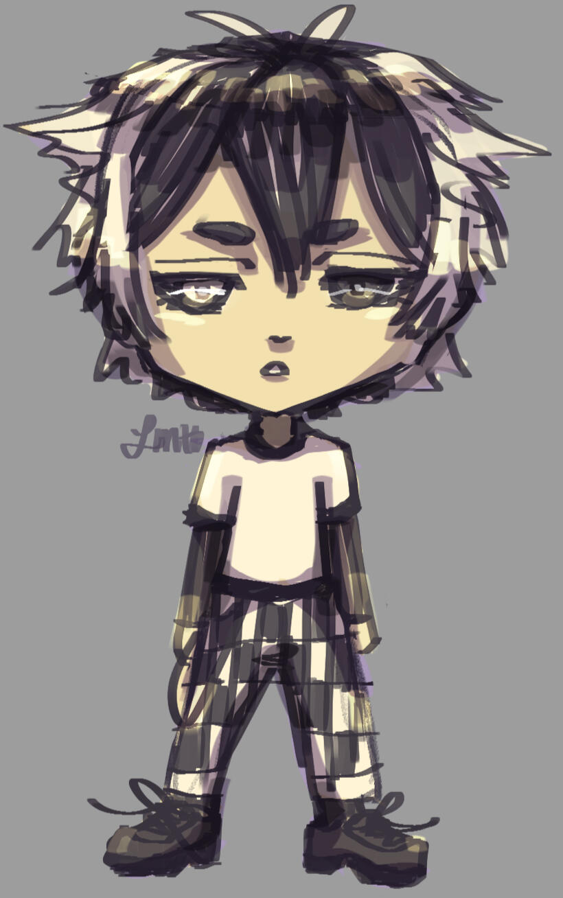 Refined sketch (no line art), color may exceed lines, lines may have varying thickness, with lighting/shading.Chibi: Sketch Render